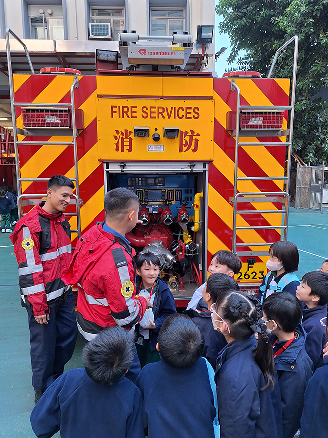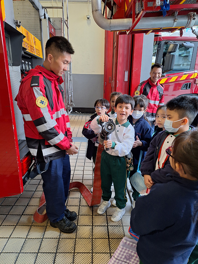 38位二年級同學參觀觀塘消防局,認識消防車及消防員的工作。