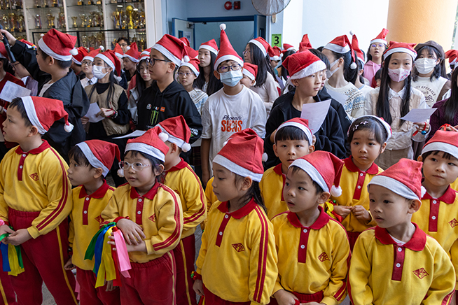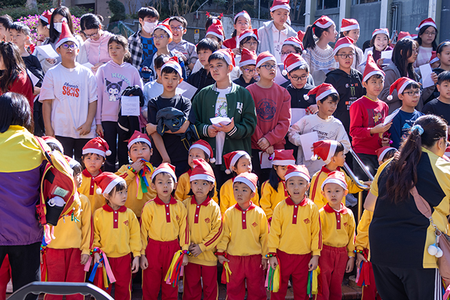 聖誕崇拜後德兆學生聯同聖公會慈光堂聖匠幼稚園聯合報佳音,將基督耶穌降生的喜訊分享到藍田這個社區。