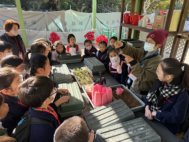 年級同學於全方位學習周參觀了九龍公園,透過實地觀察、專人講解、親自栽種,使學生對植物的構造、生長、繁殖、植物與環境的關係有更深入的認識。(相關學習課題﹕第1冊第6課 齊來種植物)。