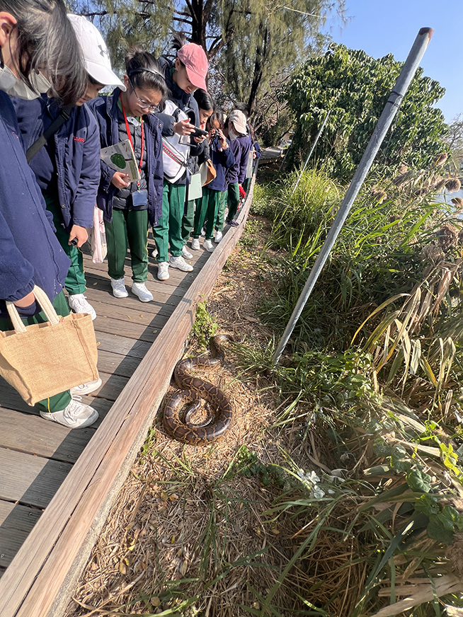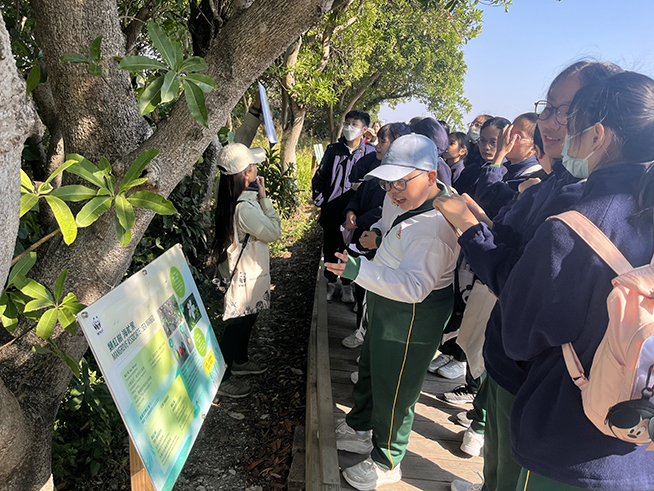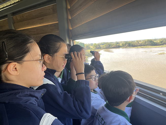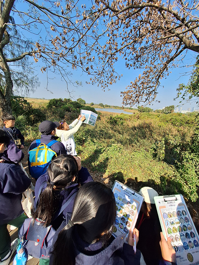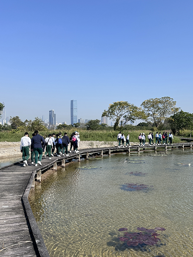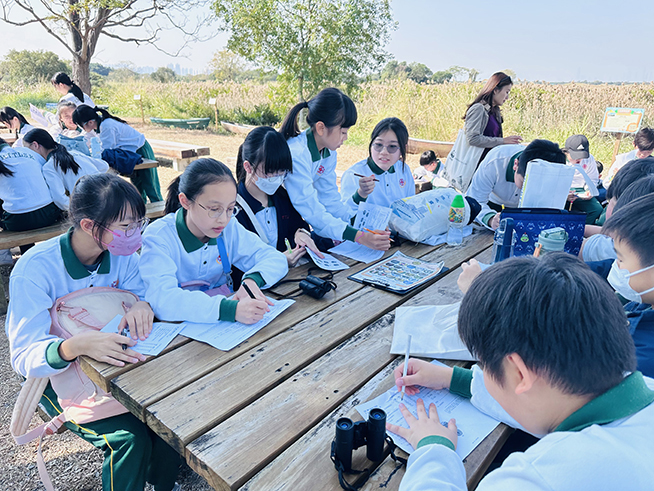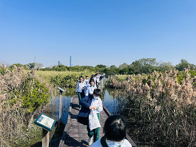 六年級同學於全方位學習周參觀了米埔自然保護區,透過不同感官探索活動、互動遊戲及欣賞濕地面貌,了解其對⼈類和雀鳥的重要性。(相關學習課題﹕第6冊 生物世界)