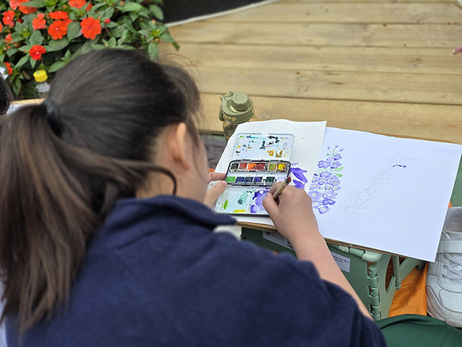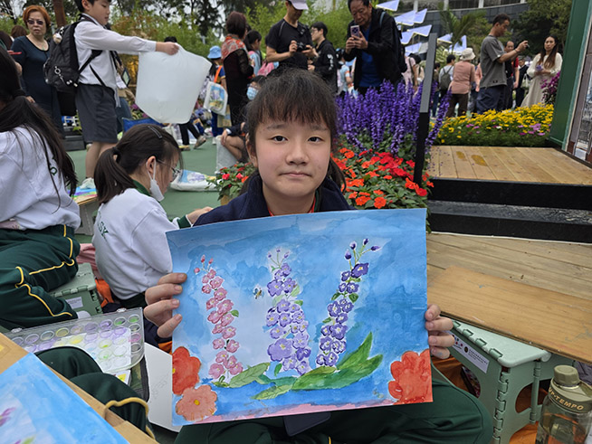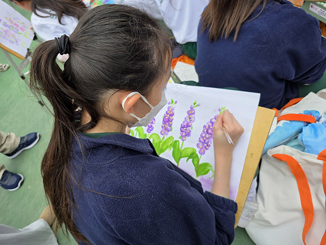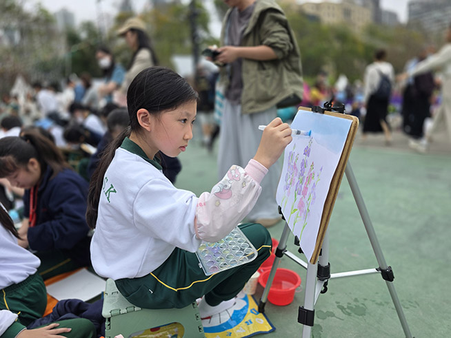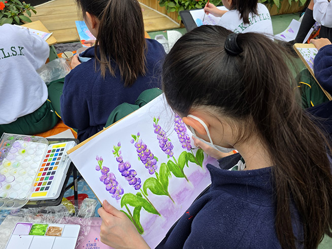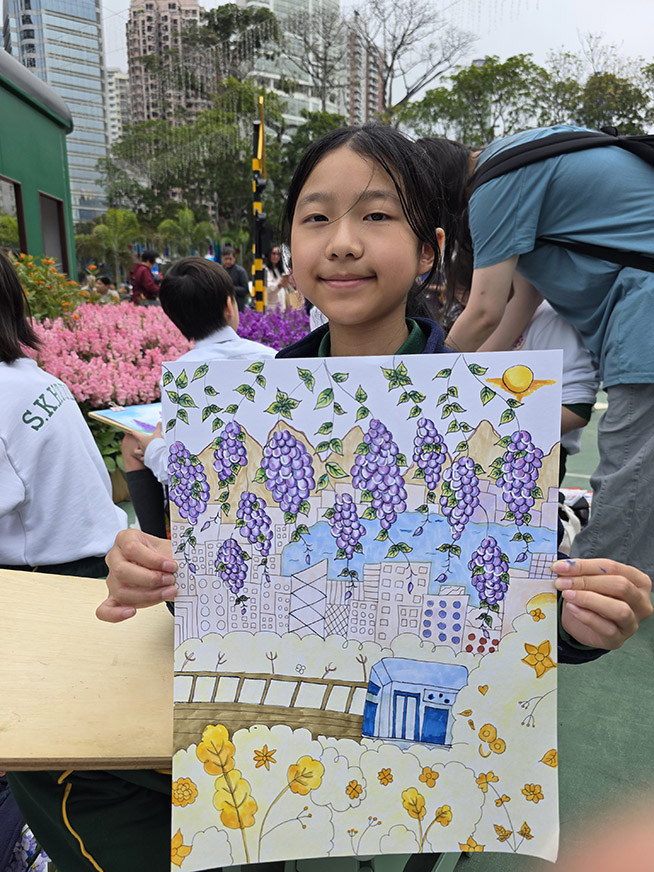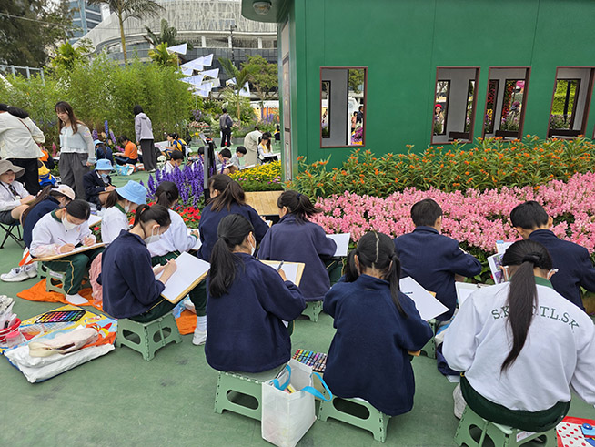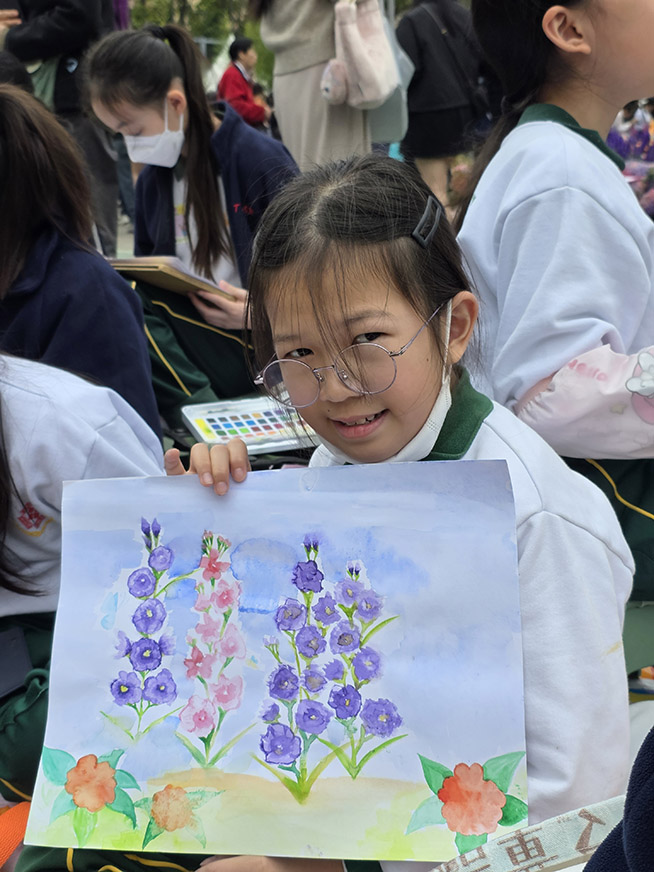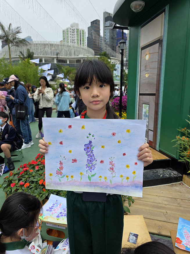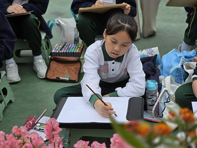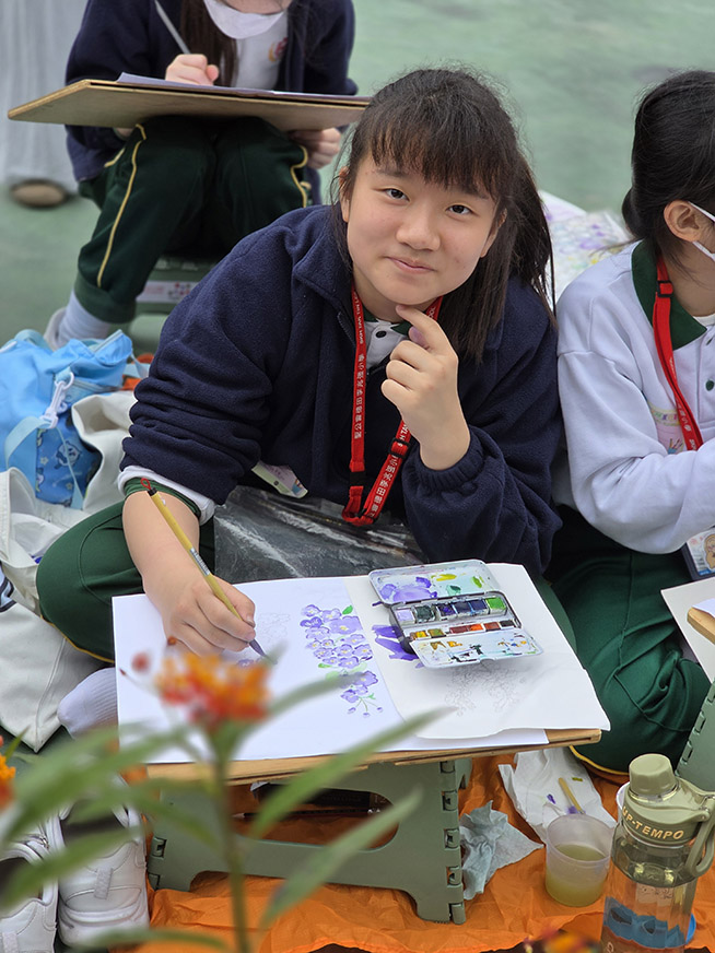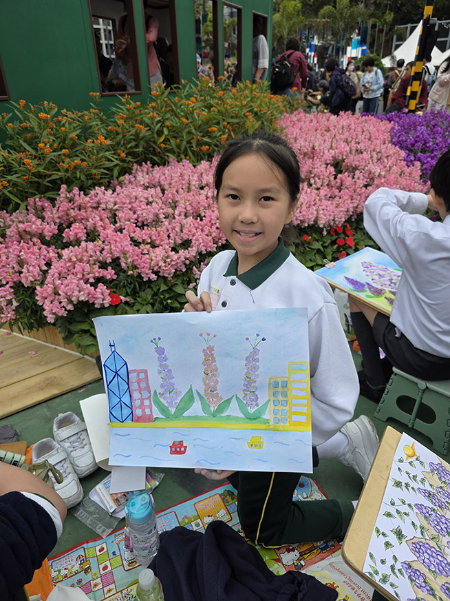 本校五、六年級十位學生參加了由康樂及文化事務署舉辦的二零二六年香港花卉展覽--賽馬會學生繪畫比賽。今屆花展以紫羅蘭為主題花,並以「花語尋『香』— 細味城市特色」為主題。紫羅蘭幽香馥郁,色彩斑斕,在繁華都市一隅悄然綻放,同學在一片花海中繪畫,樂在其中。
